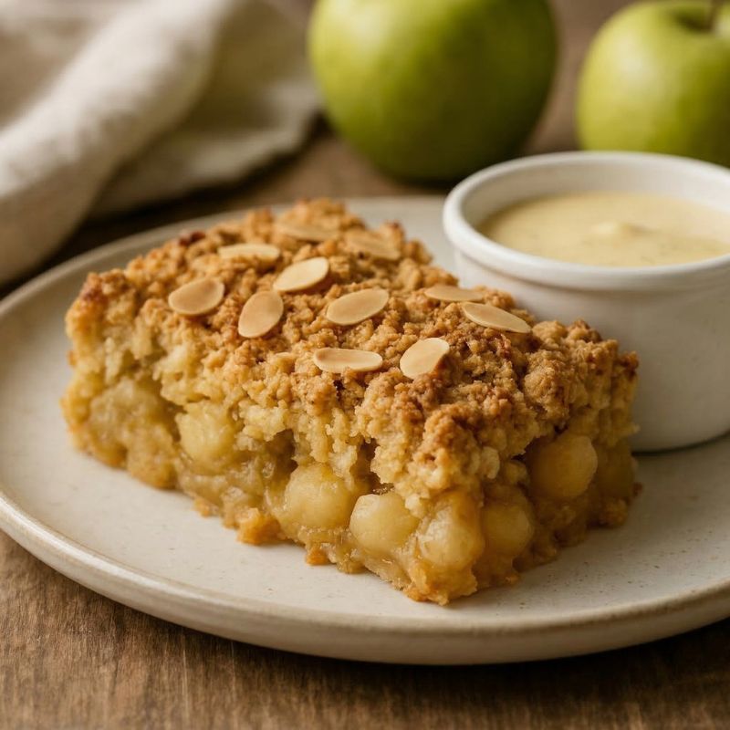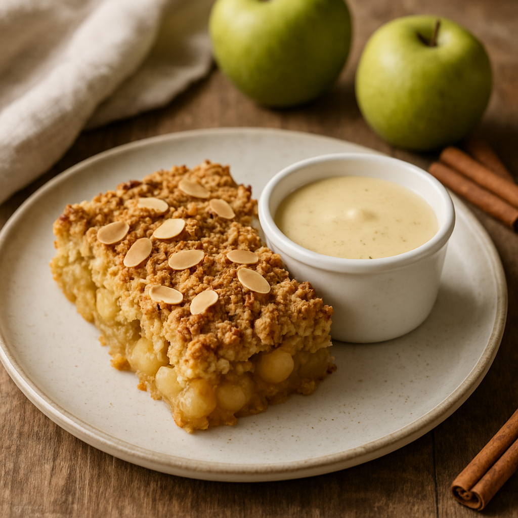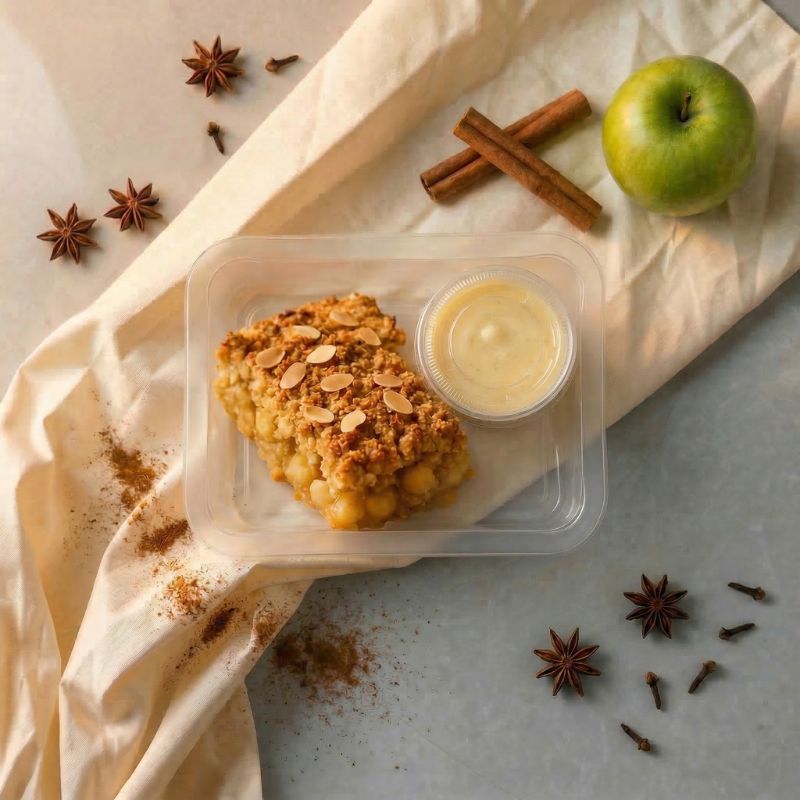 Comfort in every spoonful! Our Apple Crumble features spiced tender apples layered over a soft gluten-free biscuit base, topped with a golden, almond-studded crumble. Paired with silky vanilla bean custard and gently sweetened with honey, it’s the perfect balance of nostalgia and nourishment.