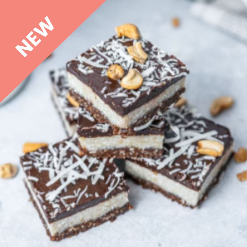 Tempt your senses with the taste of paradise and snack on this Nourish'd X Wellness by Tess Bounty Slice! The slice features THREE layers of absolute goodness with a delicious chocolate and shredded coconut topping. The only thing you'll be wanting is a piña colada to pair with your bounty slice ticket to paradise!