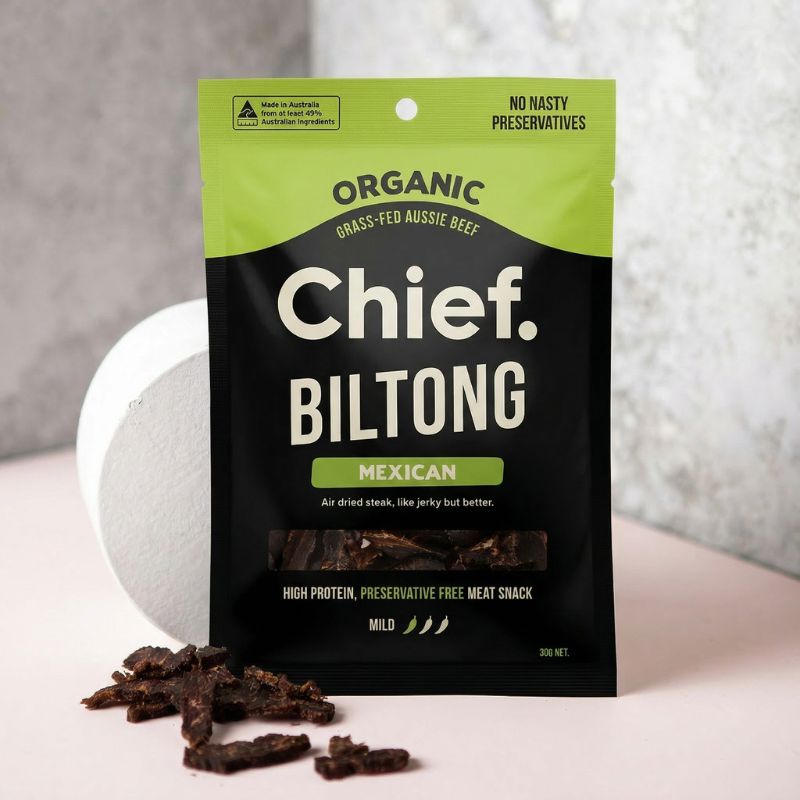 Craving something savoury? Our Lime & Chipotle Biltong is the perfect clean snack fix. Made from thinly sliced strips of organic, grass-fed, grass-finished Aussie beef, it’s slow air dried for a tender bite and packed with rich smoky flavour, zesty lime and mild Mexican-inspired spice. Very low in sugar and free from the usual nasties found in dried meats, it’s an easy high-protein snack for busy days, post-workout fuel or whenever hunger hits.